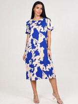 Платье женское, прямого силуэта, расширенное к низу, выполнено из трикотажного полотна. Платье женское прямого силуэта, длиной по среднему шву спинки 124 см, от шва втачивания воротника. Перед платья с нагрудными вытачками из проймы. Спинка со средним швом. В боковых швах обработаны карманы и разрезы. Воротник рубашечного типа, по переду планка «поло». Рукав втачной, одношовный, длиной 60 см. Платье без подкладки.