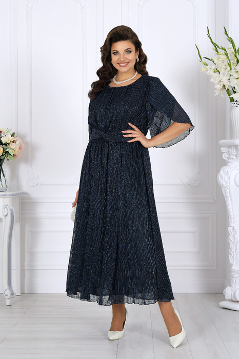 Это изысканное платье приталенного силуэта выполнено из благородной сетки-гофре с мерцающим люрексом, придающим образу праздничное сияние. Трикотажная подкладка обеспечивает комфорт, а отсутствие застежек делает модель удобной и практичной. Драпированный пояс с элегантным перекрутом акцентирует линию талии и добавляет утонченности. Длина платья идеально подойдёт как для торжественных мероприятий, так и для особых случаев, подчеркивая ваш безупречный стиль. Это платье станет вашим незаменимым спутником на праздниках, вечеринках и романтических встречах.