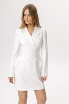 Съёмный декоративный цветок позволяет легко менять настроение образа: хочешь — создаёшь более торжественный акцент, хочешь — оставляешь чистую элегантную линию.