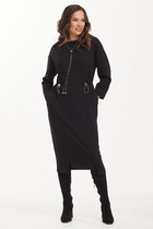 Элегантное трикотажное платье прямого кроя с разрезом по низу переда. Платье имеет слегка спущенную линию плеча. Горловина с женственным вырезом и широким воротником.