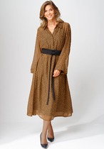 Изящное модное платье из хлопкового полотна. Модель свободной формы полуприлегающего силуэта расширенное к низу. Платье отрезное чуть выше линии талии с двумя ярусами воланов.