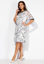 Стильное женское платье с дизайнерским принтом. Модель полуприлегающего силуэта с втачными рукавами и рубашечным воротником. Перед с застёжкой на петли и пуговицы по планке. Линия талии платья декорирована кулиской. В боковых швах разрезы.