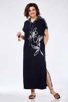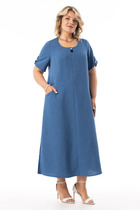 Комфортное летнее платье А-силуэта из плательной ткани лен-вишер смотрится очень оригинально и интересно. Платье из дышащего материала лен вишер идеально подойдет для полных женщин. Асимметричный перед со средним швом и диагональными подрезами в области бедер гармонично фрагментируют фигуру и наполняют образ легкостью. В боковых швах есть разрезы и функциональные карманы. Нагрудные вытачки создают прилегание в области груди. Спинка со средним швом, рукав короткий, с патой и пуговицей. Модель украшена изящной нашивкой. Элегантное и классическое платье легко комбинировать, позволяя создать и деловой стиль, и вечерний образ для девушек и женщин всех возрастов. Платье станет отличным выбором для учителей на последний звонок или даже на день рождения. Удобный крой и стильный дизайн делают его идеальным для пышных дам, на все праздники, а также для вечерних прогулок.
