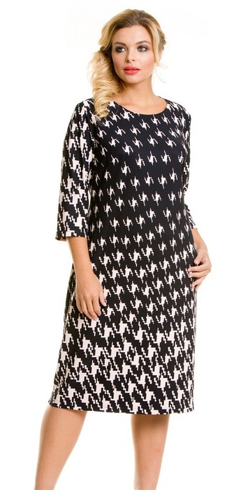 Элегантное платье полуприлегающего силуэта, выполнено из эластичного трикотажного полотна Оттоман. Перед и спинка целые по спинке две вертикальные вытачки. Овальный вырез горловины обработан обтачкой. Рукав втачной длиной 3/4 слегка зауженный к низу. Платье без подклада иВ В застежек. Длина изделия по спинке в 46 р-ре – 103 см.