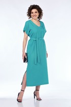 Повседневное молодежное платье прямого силуэта, выполнено в сочетании 2-х видов трикотажного полотна. В швах фигурных подрезов переда расположены удобные карманы. По левой стороне переда нагрудный накладной карман с застежкой на металлический замок-молнию. Овальный вырез горловины переда с узкой притачной планкой. Горловина спинки обработана обтачкой. Спинка целая. Платье с удлиненной линией плеча и заниженной проймой. Рукав длиной 3/4 зауженный к низу. Длина рукава от горловины в 48 р-ре – 52 см. в 58 р-ре – 54 см., обхват рукава по низу в 48 р-ре – 26 см. в 58 р-ре – 32 см. Платье с притачным низом по переду и спинке с разрезами в боковых швах, длина разреза 10 см. Притачной низ платья и рукава выполнены из ткани компаньона. Платье без подклада и застежек. Длина изделия по спинке в 48 р-ре – 96 см. в 58 р-ре – 101 см.
