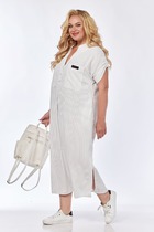 Мягкий и практичный материал этого платья порадует свою обладательницу, а лёгкий кремовый оттенок и природный принт подарят прекрасное настроение. Модель - само воплощение женственности и красоты: отложной воротничок, застёжка из небольших золотых пуговиц, пояс в комплекте. Прекрасный повседневный вариант.