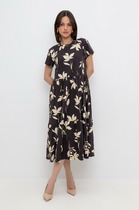 Детали: отрезная линия талии, фигурный лиф с регулируемыми завязками и оборками, застежка по переду на петли и пуговицы, юбка платья со сборкой по бокам, функциональные карманы, рукава короткие с резинкой по низу, платье на подкладке. Подкладка платья- 100% хлопок.