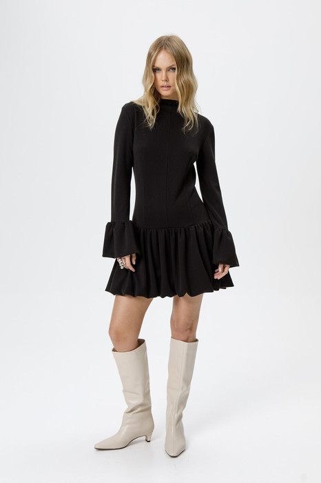 Трикотажное мини-платье с юбкой-баллон.