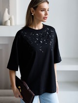 Футболка оверсайз с принтом пайетками из премиального хлопка с эластаном
