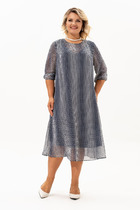 Романтичное платье свободного силуэта на запах длиной миди. Платье отрезное по линии талии и сборкой по юбке. Рукав вточной одношовный 3/4 на резинке снизу. Длина изделия - 119 см. Длина рукава - 40 см.