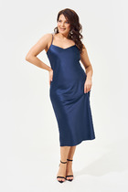Платье отрезное по линии талии, полуприлегающего кроя, выполнено из плательной струящейся ткани. Горловина с рубашечным воротником на притачной стойке. Лиф с центральной застежкой на потайную планку на петли и пуговицы. По талии обработана резинка для регуляции размера. Юбка с имитацией запаха с застежкой на притачной пояс из основной ткани, который фиксируется на бант. Рукава длинные с притачной манжетой с застежкой на пуговицы.