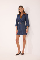Стильное платье прилегающего силуэта, отрезное по линии талии, выполнено из экокожи и трикотажного полотна. Горловина округлой формы. Длинные втачные рукава. Юбка спереди с подрезом на металлическую молнию, с возможностью регулировать высоту разреза. Застёжка по спинке в среднем шве на потайную молнию.