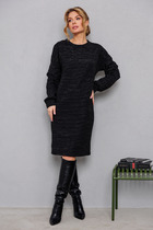 Платье прямого силуэта в длине мини, выполнено из джинсовой ткани. Отложной воротник с фигурным вырезом горловины. Рукава втачные короткие. Спереди накладные нагрудные карманы. В боковых швах внутренние карманы. Спинка с отрезной кокеткой. Верхняя часть карманов, низ рукавов и платья обработаны широкой подгибкой.
