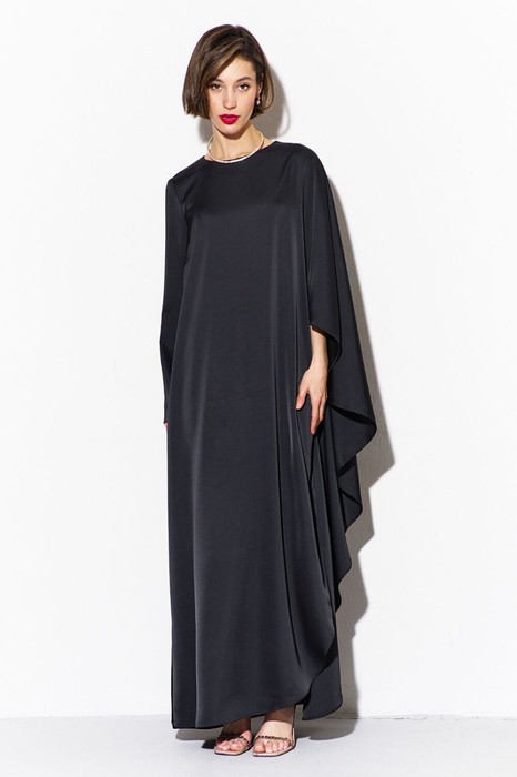 -платье ассиметричное: с левой стороны рукав цельнокроеный «летучая мышь»,  с правой стороны – втачной, длинный рукав