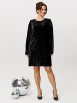 Платье женское, полу прилегающего силуэта, длиной за колено. Перед отрезной по линии талии. Верхняя часть переда с 2-мя талиевыми вытачками. Нижняя часть с 2-мя талиевыми вытачками и с запахом. Спинка со средним швом и 2-мя талиевыми вытачками. Горловина с цельнокроеной обтачкой стойкой, с фигурным вырезом с запахом. Застежка на потайную тесьму-молнию в левом боковом шве платья. Рукав втачной, одно шовный, длинный из отделочной ткани, по окату и низу рукава легкая сборка. Рукав с притачной манжетой с застежкой на 10 пришивных пуговиц. Платье с плечевыми накладками. Платье со съёмным поясом. Длина спинки 100 см. Длина рукава 61 см
