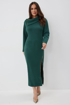 Платье женское коктейльное. Платье женское, полу прилегающего силуэта, длиной за колено. Перед отрезной по линии талии. Верхняя часть переда цельнокроеная с поясом расположенным на уровне линии талии и закреплённом в боковом шве, с 2-мя односторонними складками. Нижняя часть переда с отлетной фигурной баской, с 2-мя одно сторонними складками по линии талии. Спинка со средним швом, заканчивающимся шлицей. Горловина круглая, обточная, без воротника. Застёжка на потайную тесьму-молнию в среднем шве спинки. Рукав втачной, 2-х шовный, диной 3/4. Верхняя часть переда на притачной подкладке. Платье с плечевыми накладками. Длина платья по спинке 102 см, длина рукава 43,5 см.