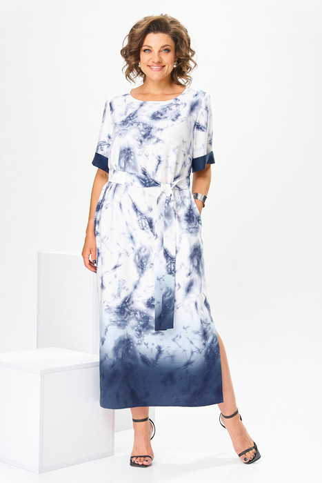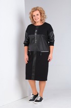 Платье женское, коктейльное. Платье женское прямого силуэта, длиной до нижней части икры. Перед с 2-мя нагрудными вытачками. Спинка цельнокроеная. Горловина круглая, обточная, без воротника. Боковые швы с карманами; внизу с разрезами. Рукав втачной короткий одно шовный с притачной отложной манжетой. Платье с плечевыми накладками. К платью прилагается съёмный пояс. Длина спинки платья 130 см. Длина рукава 29 см.
