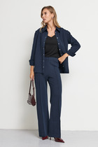 Платье женское, предназначено для повседневной носки. Платье женское, полу прилегающего силуэта, длиной за колено. Перед отрезной, ниже линии талии на 6 см; верхняя часть переда с 2-мя нагрудными выточками и средним швом, нижняя часть с отрезным бочком, шов соединения ею с передом, заканчивается шлицей, фиксирующейся на 3-и обмётанные петли и 3-и пришивные пуговицы; шов соединения часть переда декорирован 2-мя клапанами с закруглёнными концами закреплены на перед пришивными пуговицами. Спинка отрезная ниже линии талии на 6 см; верхняя часть с 2-мя таллиевыми вытачками и средним швом, нижняя часть с 2-мя таллиевыми выточками. Горловина с фигурным вырезом, обтачная без воротника. Платье со спущенным плечом. Рукам втачной, одно шовный, длиной за локоть. Платье без плечевых накладок. Длина спинки 105 см. Длина рукава+плечо 48 см.