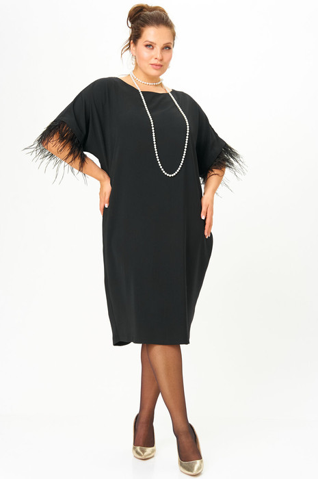 Складка на спинке позволяет получить дополнительную свободу. Платье для леди, которые любят утонченность и комфорт. Декоративная манжетка по рукавам съемная, фиксируется пуговичками.
