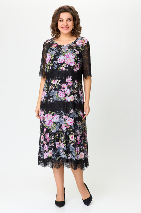 Платье Svetlana Style 1505 черный+розовые цветы