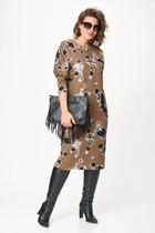 Платье женское полуприлегающего силуэта длины миди подчеркнет фигуру, а цельнокроеный рукав длиной 7/8 придаст образу утонченность. Округлая горловина добавляет мягкости, а разрез и застежка молния по спинке в среднем шве придает нотку игривости и удобства. В боковых швах карманы. Съемное украшение в виде цветка замечательное дополнение, для создания разнообразных образов.