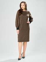 (плательный креп турецкого производства) прямого силуэта. По переду обработаны нагрудные выточки, спинка цельнокроеная. В боковых швах обработаны карманы, по низу боковых швов – разрезы. Рукав втачной одношовный, со сборкой по шву притачивания манжеты. По низу рукава обработана широкая манжета 10,5 см, застёгивающаяся на 4 пробивные петли и 4 декоративные пуговицы.