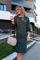 Платье из тонкого текстиля Х-образного силуэта, отрезное по линии талии. По переду и спинке лифа расположены талиевые вытачки. Юбка расклешённая с карманами в боковых швах. В среднем шве спинки предусмотрена молния. Рукав втачной длиной 4/5. Низ рукава собран эластичной тесьмой. длина рукава 51см (±1см).