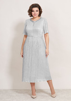 Платье из тонкого текстиля Х-образного силуэта, отрезное по линии талии.