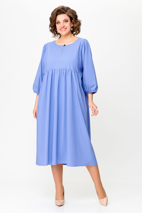 Платье отрезное по линии талии. Перед лифа со средним швом и разрезом с застёжкой по горловине на навесную петлю и декоративную пуговицу. Юбка со сборкой по линии талии и карманами в боковых швах. По низу юбки пришита фирменная эмблема «SWАLLOW». Рукав цельнокроеный, отрезной по линии проймы, со сборкой по окату. Низ рукава собран на эластичную тесьму.