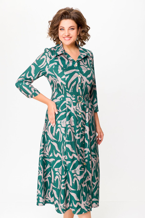 Платье Swallow 784.2 изумруд+бежевая абстракция