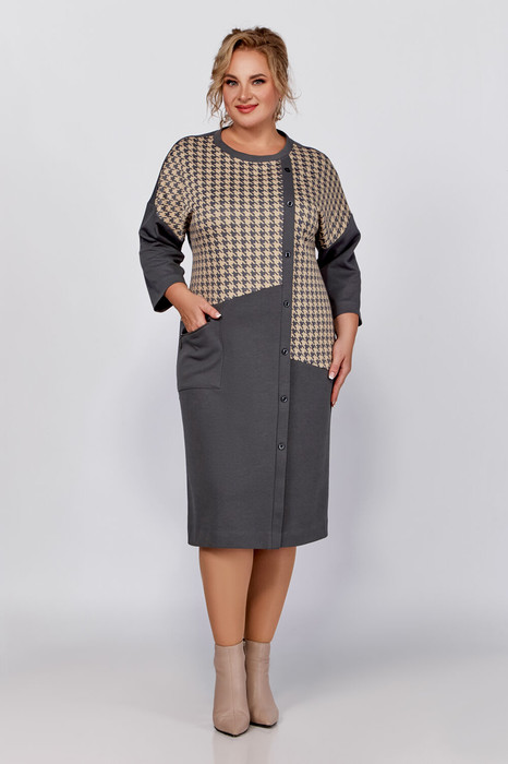 Платье Swallow 791 светлый графит+серо-бежевая гусиная лапка