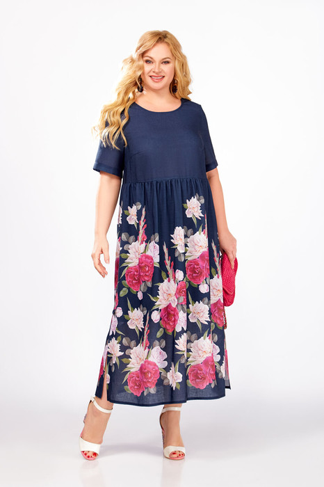 Платье из вискозно-льняной ткани с оригинальным принтом прямого силуэта длиной миди. Платье с отрезной, слегка завышенной линией талии и сборкой по юбке.