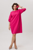 Платье женское ,расширенное к низу, с коротким втачным рукавом. Рукав выполнен из отделочной ткани с тремя складками по низу. Вырез горловины круглой формы с отделочной бейкой спереди. По спинке средний шов и застёжка в шве на потайную тесьму ,,молния". Декором служит съёмный цветок.