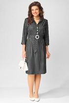 Платье женское, А-силуэта с коротким втачным рукавом, из трикотажного полотна. Вырез горловины круглой формы с подрезной бейкой. Спереди наклонные карманы с декоративными пуговицами. А-силуэт платью придают рельефы переда и спинки с цельнокройными бочками. По спинке средний шов и застежка на потайную тесьму "молния" Платье на трикотажной подкладке.