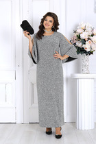 Элегантное платье полуприлегающего силуэта с асимметричной застежкой на петли и пуговицы. Перед платья с нагрудными вытачками и клапанами в области бёдер. Спинка с талиевыми вытачками и средним швом, внизу которого обработана шлица. Застежка асимметричная, двубортная, по низу платья расходится на разрез. В области плеч — погоны, закрепляющиеся на пуговицу. Рукава двухшовные втачные, длиной 3/4, с притачной манжетой. Платье с плечевыми накладками и со съёмным ремнем в цвет фурнитуры. Фурнитура и комплектующие (ремень) могут незначительно отличаться от представленных на фото.