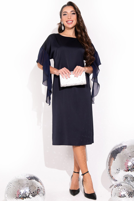 Коктейльное платье от бренда ELZA, для тех кто любит удивлять. Прямой силуэт, спущенный рукав с шифоновым воланом, оригинальный крой.