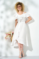 Для придания силуэтности платью, по линии талии настрочена кулиса с резинкой, переходящая в завязки пояса.