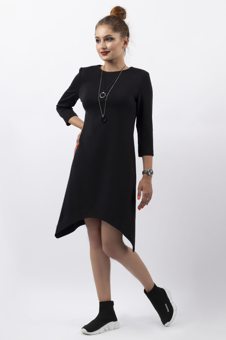 Платье женское, слегка расклешенное от бедра к низу с застежкой по среднему шву спинки на потайную молнию.