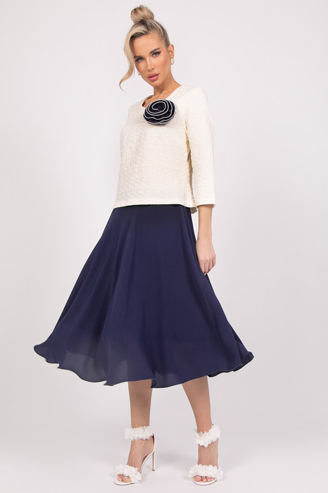 Платье “Жди меня” из новой коллекции весна-лето 2025 от компании ELZA прекрасно впишется в ваш гардероб. Имитация нарядного костюма, позволит вам быть роскошной на любом торжественном мероприятия. Верх ткань “жаккард” , юбка “креп-шифон” с подкладом фасона “клёш”. Цветок съемный.