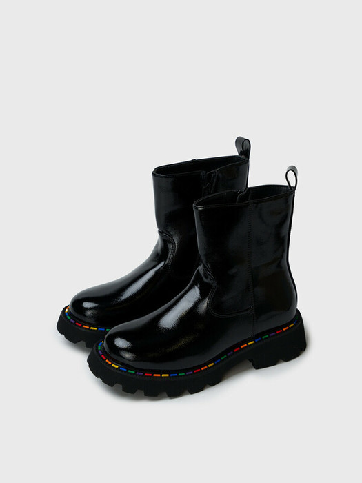Ботинки на утеплители для девочки подростка. Ботинки выполнены из мягкой искусственной лаковой кожи. Ботинки на молнии. Подкладка и стелька выполнены из мягкого флиса. Стелька съемная и вынимается для просушки. Рекомендованный температурный режим носки до -5°С.  Цветной рант придает простой модели оригинальность. Гибкая подошва из ТПР  не скользит и устойчива к истиранию. Формоустойчивый задник поддерживает стопу в правильном положении. Эргономичная форма колодки обеспечивает правильное формирование стопы ребенка. Трендовые ботинки для девочки школьницы отлично подойдут для прогулок: весна, поздняя осень.