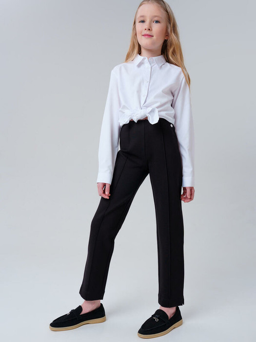 Классические черные школьные трикотажные брюки для девочки.