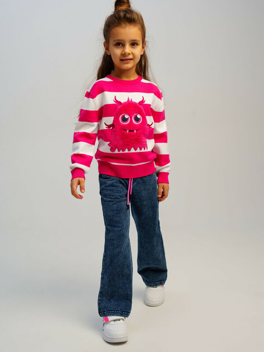Джемпер детский для девочки.Вязаный джемпер с содержанием вискозы.Вышивка имитирует мягкий ворс.