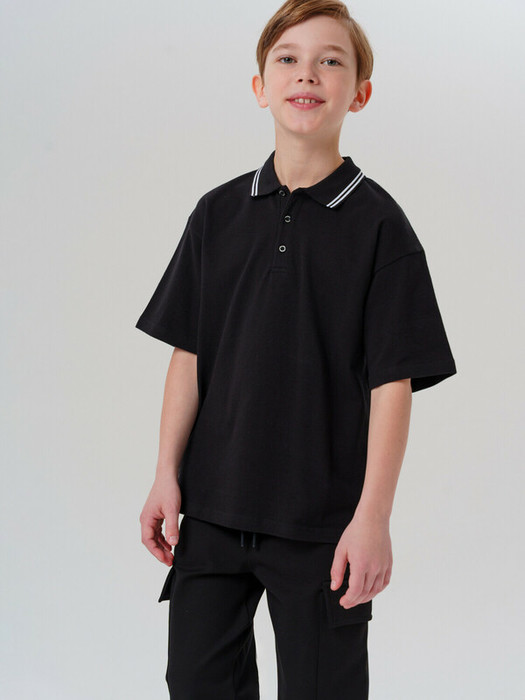 Классическое черное оверсайз поло с коротким рукавом для мальчика