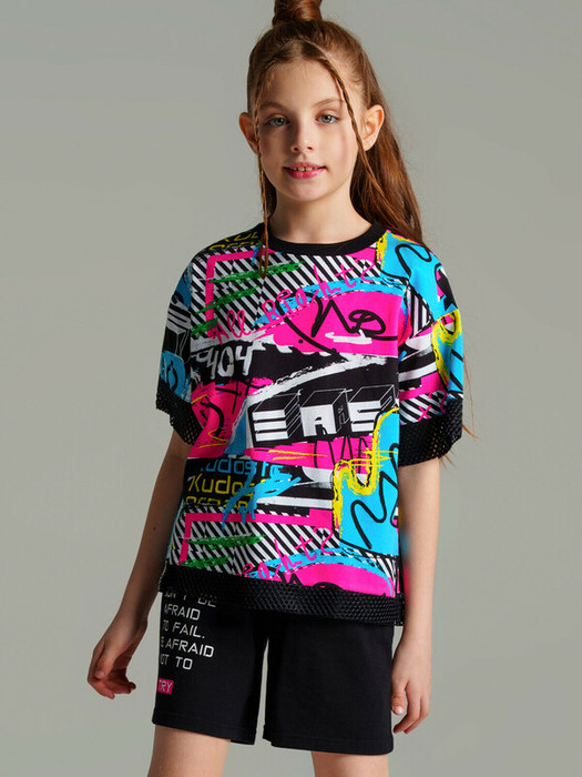 Футболка oversize из качественного и приятного на ощупь трикотажа джерси. Высокое содержание хлопка 95%. Благодаря наличию эластана в составе ткани изделие проще в уходе и держит форму.