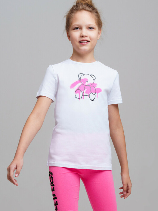 Футболка для девочки подростка. Футболка с высоким содержанием хлопка 95%. Благодаря наличию эластана в составе ткани изделие проще в уходе и держит форму. Модель выполнена из качественного и приятного на ощупь трикотажа.