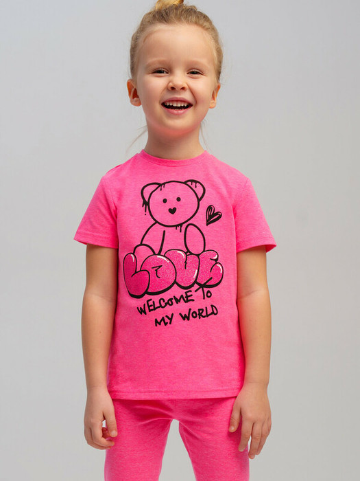 Футболка детская для девочки. Футболка с высоким содержанием хлопка 95%. Благодаря наличию эластана в составе ткани изделие проще в уходе и держит форму. Модель выполнена из качественного и приятного на ощупь трикотажа.
