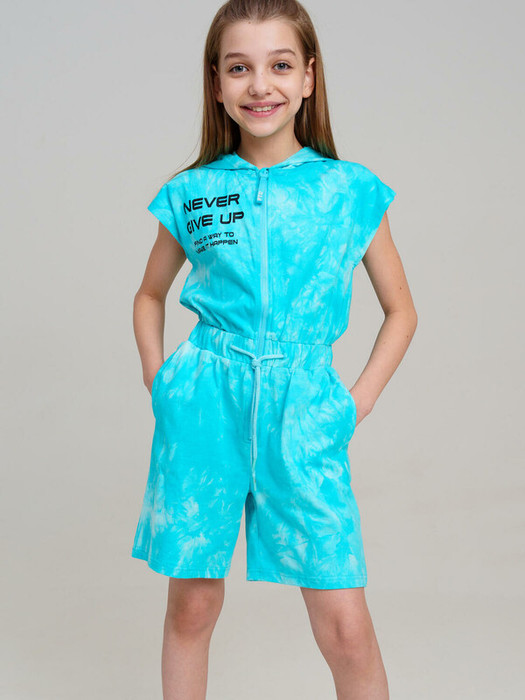 Комбинезон для девочки подростка.  Комбинезон из качественного и приятного на ощупь трикотажа джерси. Высокое содержание хлопка 95%. Благодаря наличию эластана в составе ткани изделие проще в уходе и держит форму. Пояс на резинке со шнурком. Застежка на молнию. Функциональные боковые карманы. Модель выполнена из качественного и приятного на ощупь трикотажа.