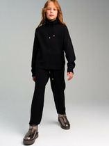 Вязаный костюм для девочки подростка. Джемпер и брюки с содержанием вискозы. Штаны на резинке со шнурком. Удобные боковые карманы. Модель из капсульной коллекции BLACK CHIC (БЛЭК ШИК). Соберите полный образ в едином стиле!
