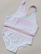 Комплект белья: трусы-шорты и топ со съемными чашками из мягкой трикотажной ткани с добавлением эластана для комфортной носки и свободы движений. Регулируемые бретели. По низу топа и поясу шорт фактурная резинка.