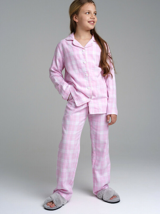 Пижама текстильная. 100% хлопок. Фланель - мягкая, приятная к телу ткань с небольшим начесом. Застежка на пуговицы. Эластичный пояс с тесьмой позволяет легко надевать брюки и утягивать до комфортной посадки.